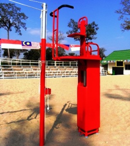 Add to CART Category: Product Code: 50395 Competition Beach Volleyball Umpire chair. Made from special aluminium profile with padding. Powder coated. Height adjustable version. The chair can be transported easy due to the attached transport wheels.